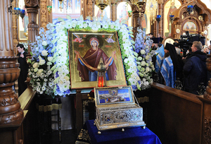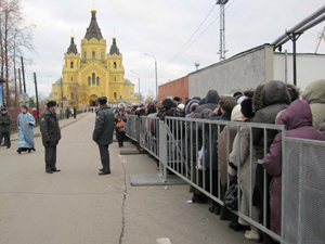 Самолет из Тюмени доставил в Нижний Новгород великую православную святыню - Пояс Пресвятой Богородицы, которая, по преданиям, способна исцелять от бесплодия и помогать рождению здоровых детей. В Александро-Невском кафедральном соборе Нижнего Новгорода Святейший Патриарх Кирилл совершил молебен перед ковчегом с Поясом Пресвятой Богородицы. "Я прибыл по приглашению президента, чтобы принять участие в торжествах, посвященных государственному празднику, и радуюсь возможности поклониться образу Пречистой Царицы Небесной именно в этом храме, именно в этот праздник, именно в этот день", - сказал патриарх. Он отметил, что неслучайно именно в день иконы Казанской Божьей Матери пояс Богородицы оказался в Нижнем Новгороде - городе, откуда ушло ополчение, чтобы освобождать Москву. "Неслучайно, что именно в Нижнем Новгороде, откуда двинулось ополчение освобождать Москву, взяв с собой великую святыню земли нашей - Казанскую икону Божьей Матери и началось освобождение Руси. А в этот день именно в Нижний Новгород пронесен пояс Пресвятой Богородицы, и в этот праздничный день к нему могут приложиться многие верующие", - сказал Патриарх. Он отметил, что, только соединяя молитву и труд, человек может изменить все к лучшему. Около 20 тысяч человек выстроились в очередь к храму Александра Невского в Нижнем Новгороде, куда утром в пятницу доставили пояс Пресвятой Богородицы.