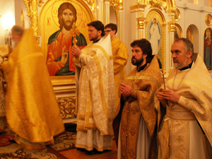 Как и в старину в полночь величественно зазвучали колокола храма, созывая народ на молитву, чтобы «Бог благословил венец наступающего лета, утолил в нас вражду, чтобы подал мир, твердую и нелицемерную любовь, благочинное строение и житие добродетельное…» Пожелавших молитвою встретить наступающее новолетие было немало. Но больше было священников крупных храмов - во время великого входа вся солея была заполнена духовенством.