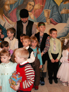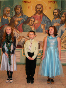 Витя: На Рождество я был на ночной службе вместе с папой. У меня было замечательное настроение, ведь в этот день родился наш Спаситель. Я совсем не хотел спать, служба прошла быстро. Затем мы пошли домой разговляться. После службы я стал ждать утренника. Я люблю игры на рождественском утреннике. Мне нравится петь песни, и получать подарки.