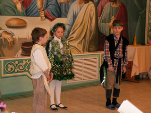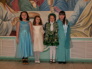 Ирина: Я долго ждала Рождество. В церкви всё было украшено ёлками. Я стояла возле клироса и тихонько подпевала тропарь. На утреннике все дети пели и тропарь, и колядки.