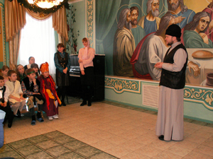 В трапезной для детей был накрыт праздничный стол.