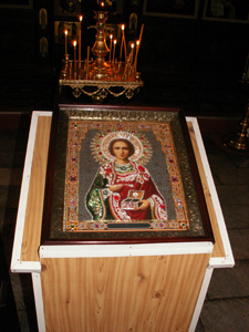 …Очевидцы описали жизнь, страдания и кончину святого Пантелеимона. Святые его мощи частицами разошлись по всему христианскому миру. Его глава хранится в Русском на Афоне Пантелеимоновом монастыре. В день памяти св. Великомученика Пантелеимона в Никомидии собираются тысячи людей, православных христиан и инославных - армян, католиков и даже мусульман. Привозят сотни больных, многие из которых получают исцеления по молитвам святого. В Никомидийской митрополии хранятся тысячи собственноручных записей - греков, турок, армян и итальянцев, которые получили исцеления. Имя св. Великомученика Пантелеимона призывается при совершении Таинства Елеосвящения, при молебне о болящем и при освящении воды, а врачи считают его своим покровителем. Престол нижнего храма собора в Богородичном Пантелеимоновом Щегловском мужском монастыре посвящен Пантелеимону Целителю. Поэтому день памяти св. Целителя Пантелеимона является одним из престольных праздников обители. В алтаре хранится ковчег с частицей мощей святого Пантелеимона, которые в день памяти, посвященный Целителю Пантелеимону выносятся на поклонение из алтаря в храм.