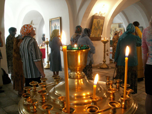 Это уже стало традицией – в пятницу за вечерним богослужением в монастырском храме звучит молебное пение с чтением акафиста Великомученику и Целителю Пантелеимону