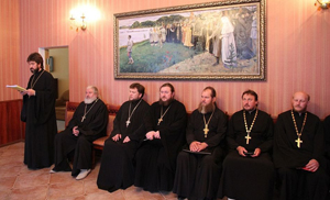 27 июня 2013 года. Под председательством митрополита Тульского и Ефремовского Алексия состоялось очередное заседание епархиального совета, в котором принял участие и архимандрит Клавдиан, председатель Тульского епархиального паломнического центра. Собрание было посвящено подведению итогов работы благочинных и руководителей отделов за июнь текущего года, а также были намечены планы на предстоящий месяц. Открывая работу совета, секретарь Тульской епархии протоиерей Павел Савельев огласил резолюцию Святейшего Патриарха Московского и всея Руси КИРИЛЛА, наложенную на отчет о деятельности Тульской епархии за 2012 год. Правящий архиерей выразил благодарность за высокую оценку работы Тульской епархии: «Благодарим Его Святейшество за высокую оценку нашей скромной работы, но довольствоваться тем, что достигнуто нами не позволительно, нельзя успокаиваться, нужно двигаться дальше и развивать все добрые наработки, чтобы соответствовать этой высокой оценке». Далее секретарь Тульской епархии зачитал циркулярные письма Московской Патриархии об организации помощи пострадавшим в результате вооруженных столкновений в Сирии. В ближайшее воскресенье 30 июня по благословению Первосвятителя нашей Церкви во всех храмах Тульской епархии будет оглашено обращение Патриарха Московского и всея Руси КИРИЛЛА в связи с трагическими событиями в Сирии Был также рассмотрен циркуляр о проведении в следующем году юбилейных мероприятий, посвященных 700-летию со дня рождения преподобного Сергия, игумена Радонежского и всея России чудотворца. По благословению правящего архиерея создана комиссия под председательством благочинного Новомосковского района архимандрита Лавра (Тимохина) в составе: благочинный г.Тулы протоиерей Сергий Резухин, секретарь Тульской епархии протоиерей Павел Савельев, председатель информационного отдела Тульской епархии игумен Агафангел (Болдин), директор епархиального культурно-просветительского центра «Фавор» Марина Александровна Михалева. Епархиальной комиссии поручено подготовить к заседанию Епархиального совета на второй неделе сентября, материалы и предложения по проведению юбилейных торжеств в Тульской епархии, приуроченных к этой дате. Члены епархиального совета также были ознакомлены с циркуляром о проведении торжественных мероприятий, приуроченных к 1025 – летию Крещения Руси. С сообщением выступил член оргкомитета, председатель епархиального отдела религиозного образования и катехизации протоиерей Геннадий Антонов. Он доложил о тех мероприятиях, которые будут проводиться во всех благочиниях и всеми епархиальными отделами в рамках празднования этой даты не только в день 1025 – летия Крещения Руси - 28 июля, но вплоть до конца текущего года. В ходе заседания был заслушан циркуляр управления делами Московской Патриархии № 2589 от 24 июня 2013 года, в котором особый акцент был обращен на некоторые журналы последнего заседания Священного Синода, состоявшегося 29 мая сего года. В частности, в журнале № 49 сказано: «Благодарить епархиальных архиереев за проведение епархиальных мероприятий в рамках Дня православной книги, а также за своевременное размещение информации о них на интерактивной карте Издательского Совета Русской Православной Церкви». Там же наряду с лучшими десятью епархиями была отмечена и ра