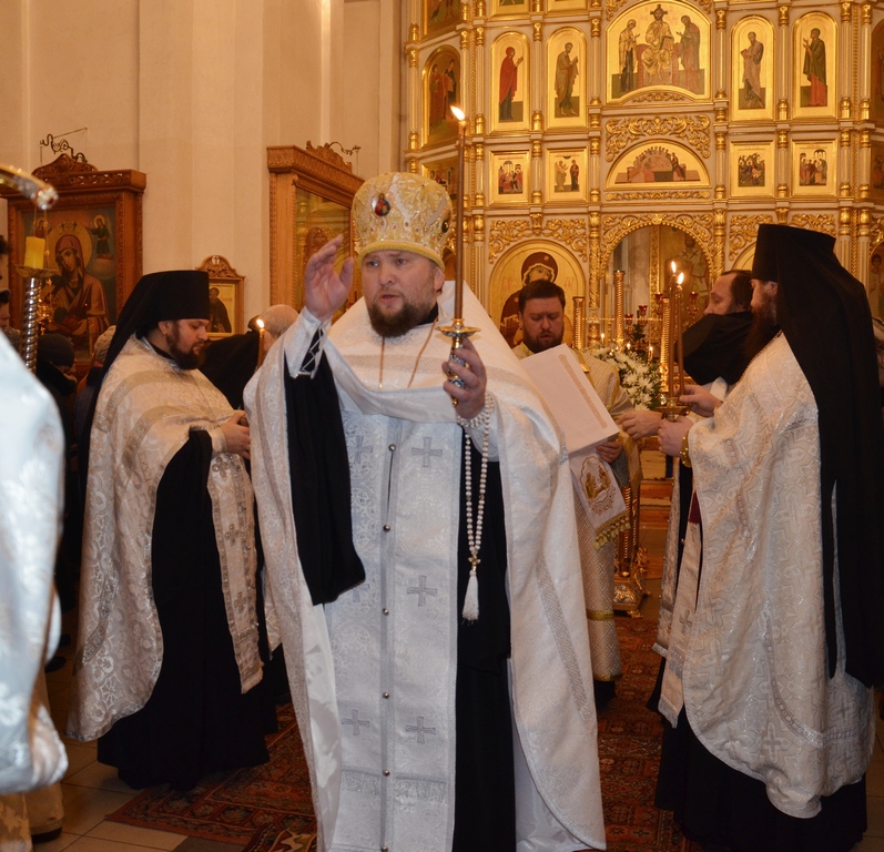 Всенощное бдение в Рождественский сочельник в соборе Богородичной Щегловской обители Тулы |