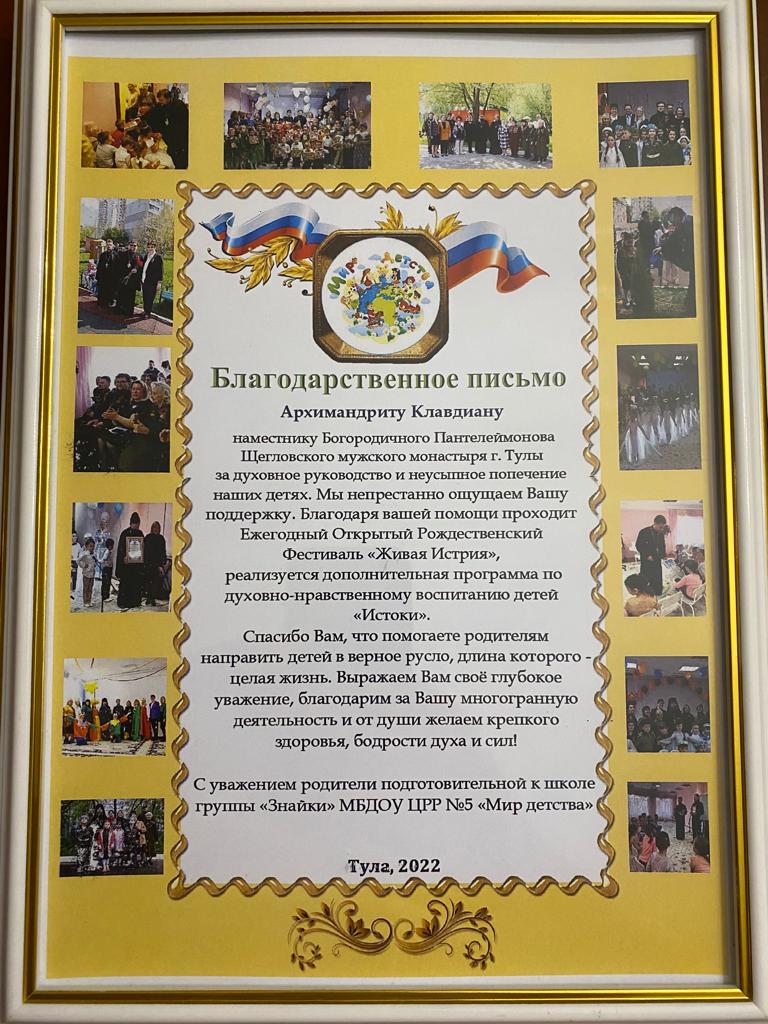 Архимандриту Клавдиану и преподавателям воскресной школы обители были вручены благодарственные письма от центра развития ребенка "Мир детства"Фотоальбомы » Архимандриту Клавдиану и преподавателям воскресной школы обители были вручены благодарственные письма от центра развития ребенка "Мир детства"