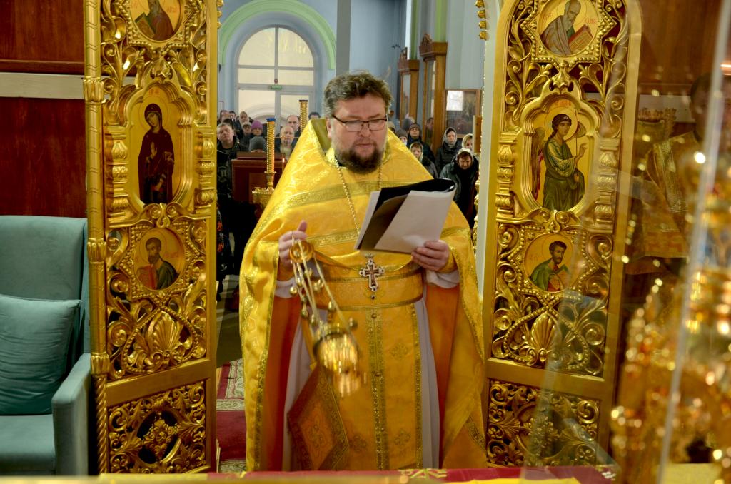 Божественная литургия в Неделю о блудном сыне, в день празднования Собора вселенских учителей и святителей Василия Великого, Григория Богослова и Иоанна Златоустого