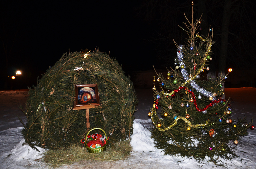 Христос раждается — славите! Христос с Небес — срящите! Христос на земли - возноситеся! Пойте Господеви, вся земля, и веселием воспойте, людие, яко прославися |