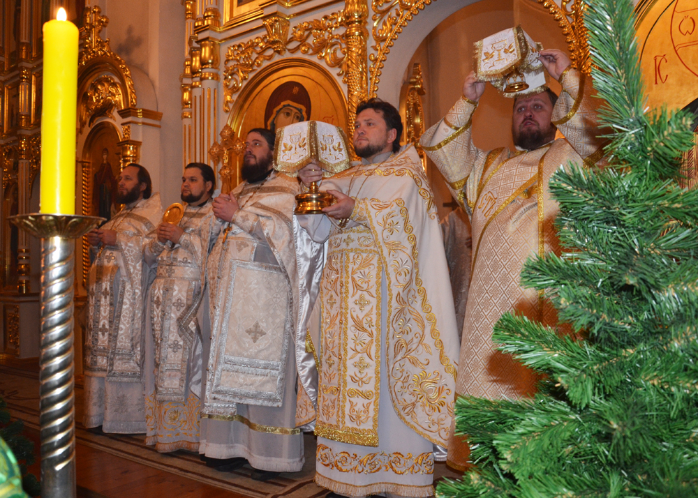 Христос раждается — славите! Христос с Небес — срящите! Христос на земли - возноситеся! Пойте Господеви, вся земля, и веселием воспойте, людие, яко прославися |