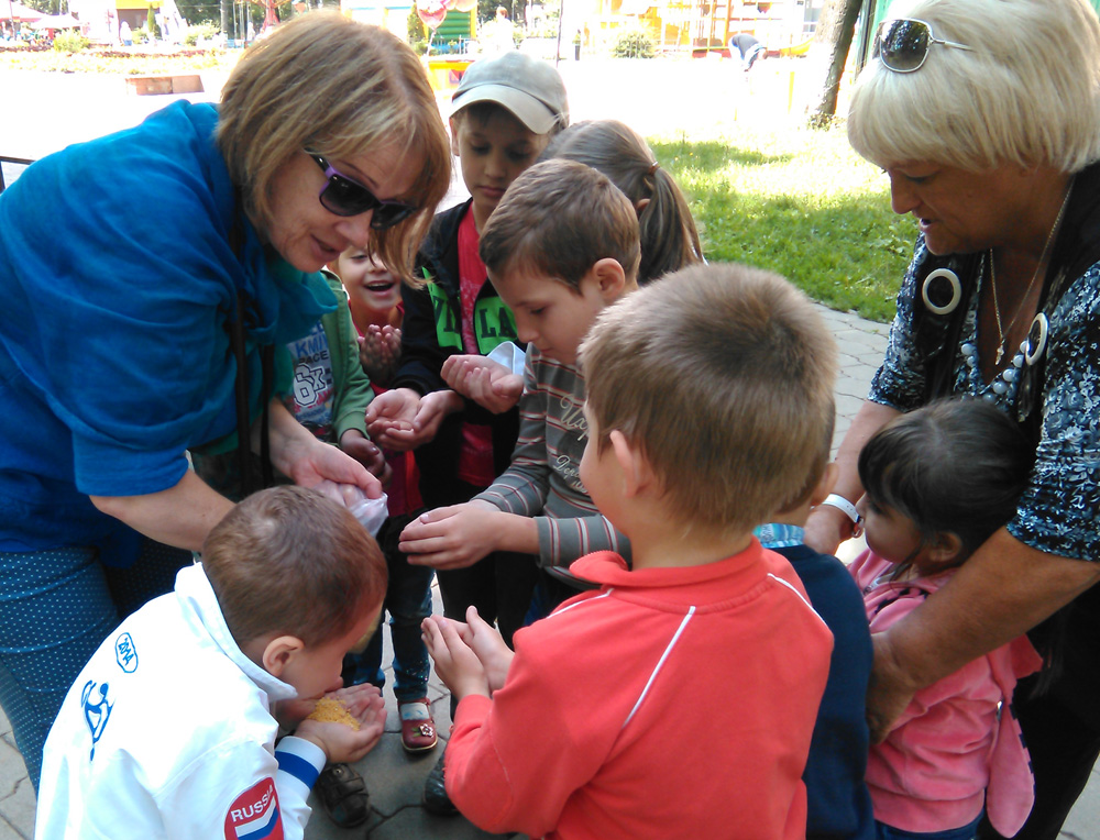 Активисты социальной службы Щегловского монастыря с подопечными из детского центра реабилитации в Кировском сквере
